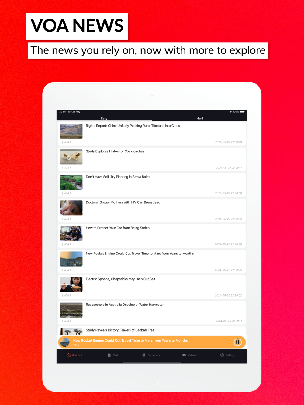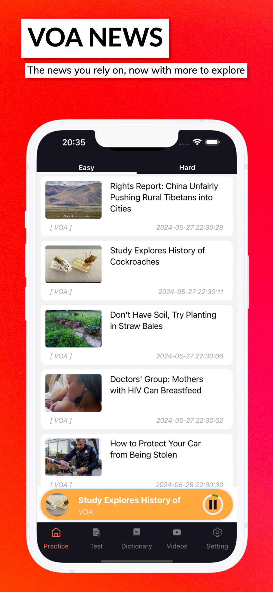 VOA Daily Learn English is a free app designed to help you practice English every day. Based on the VOA Learning English program from Voice of America, all content is written in simple words and spoken at a slower speed—making it easy for learners of all levels to follow.
