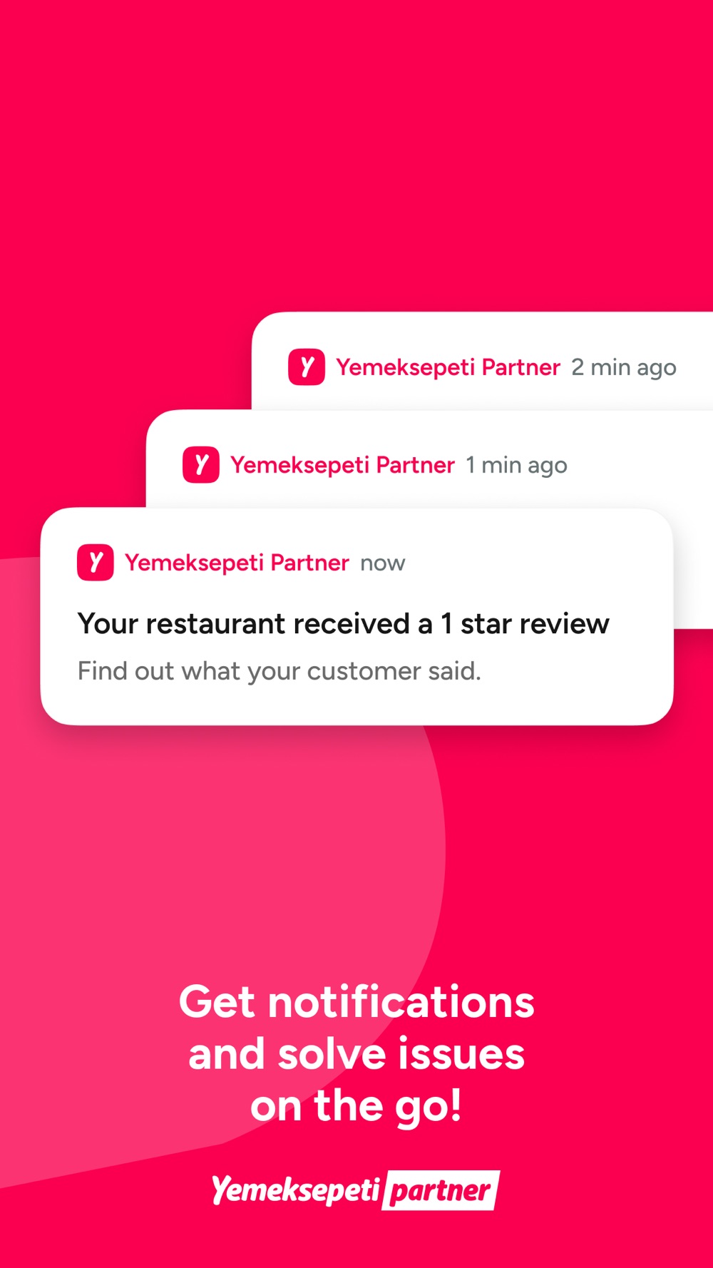İşinizi masaüstünüzden yönetme zahmetine elveda deyin. Yemeksepeti Partner ile işinizi gittiğiniz her yere yanınızda götürebilirsiniz!