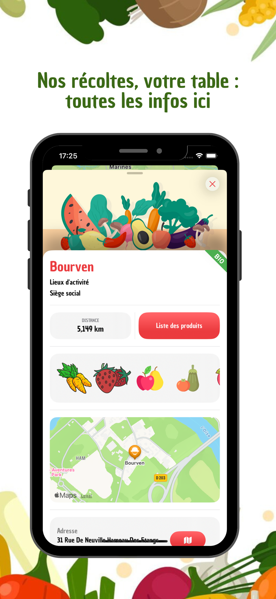 Un bouton dédié vous permet d'obtenir un itinéraire détaillé via Apple Plan pour vous rendre facilement chez le maraîcher de votre choix. Plus besoin de se perdre en chemin, suivez simplement les instructions fournies.