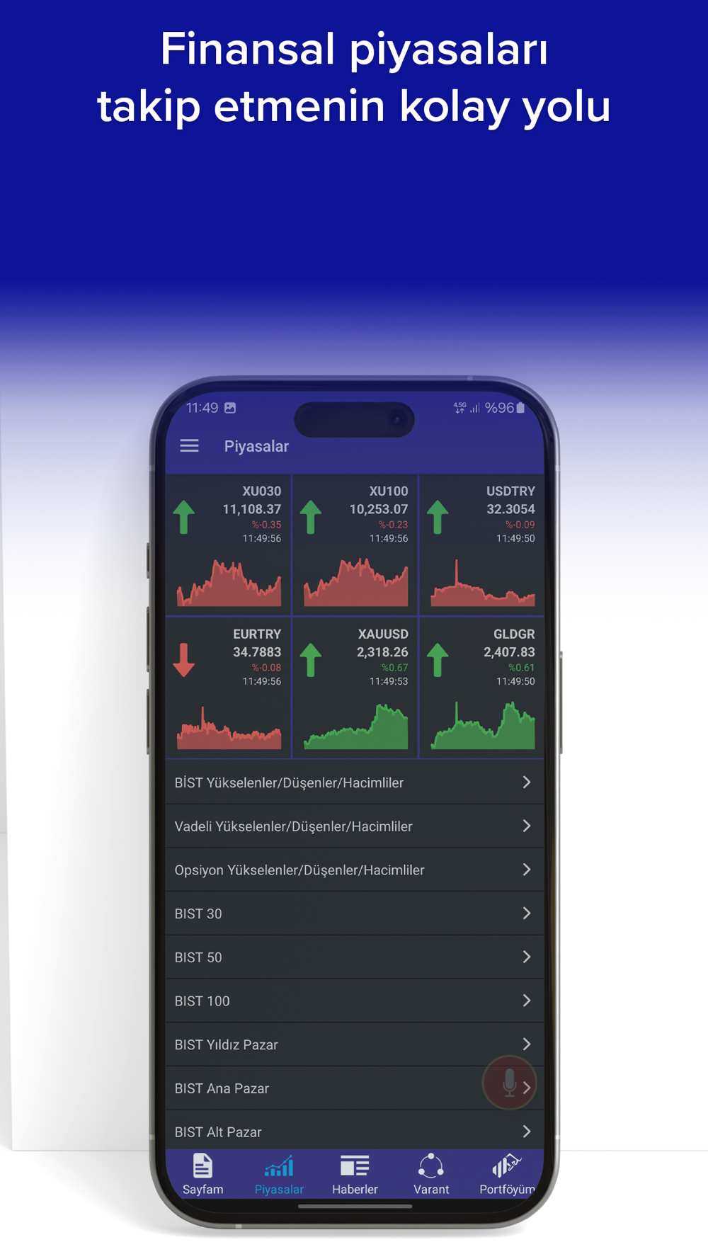 Anlık Piyasa Verileri: Canlı hisse senedi, borsa verileri ve grafiklerle piyasaları anında takip edebilirsiniz.