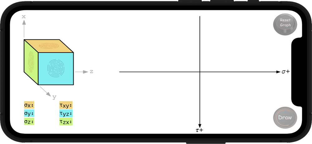 Explore and understand 3D material stress through Mohr's circle. Calculates principal stresses, maximum shear stress and Von Mises stress