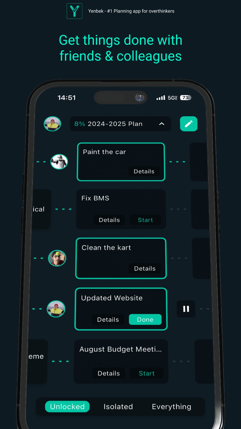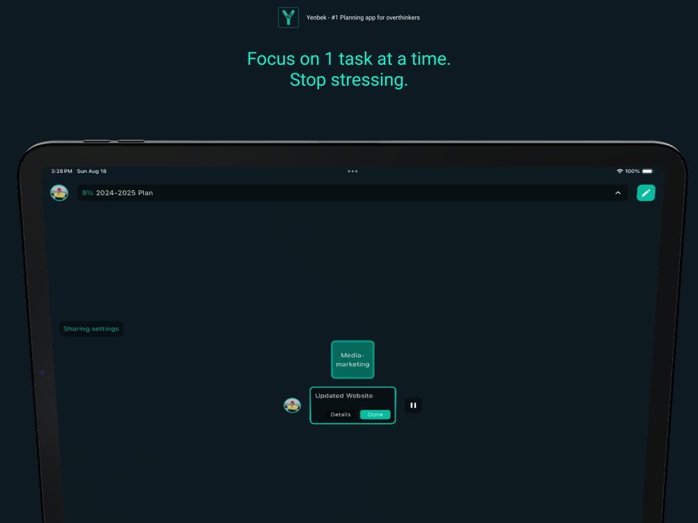 One Task at a Time – No clutter, no endless lists. Yenbek presents tasks like levels in a game, keeping you focused on what matters.