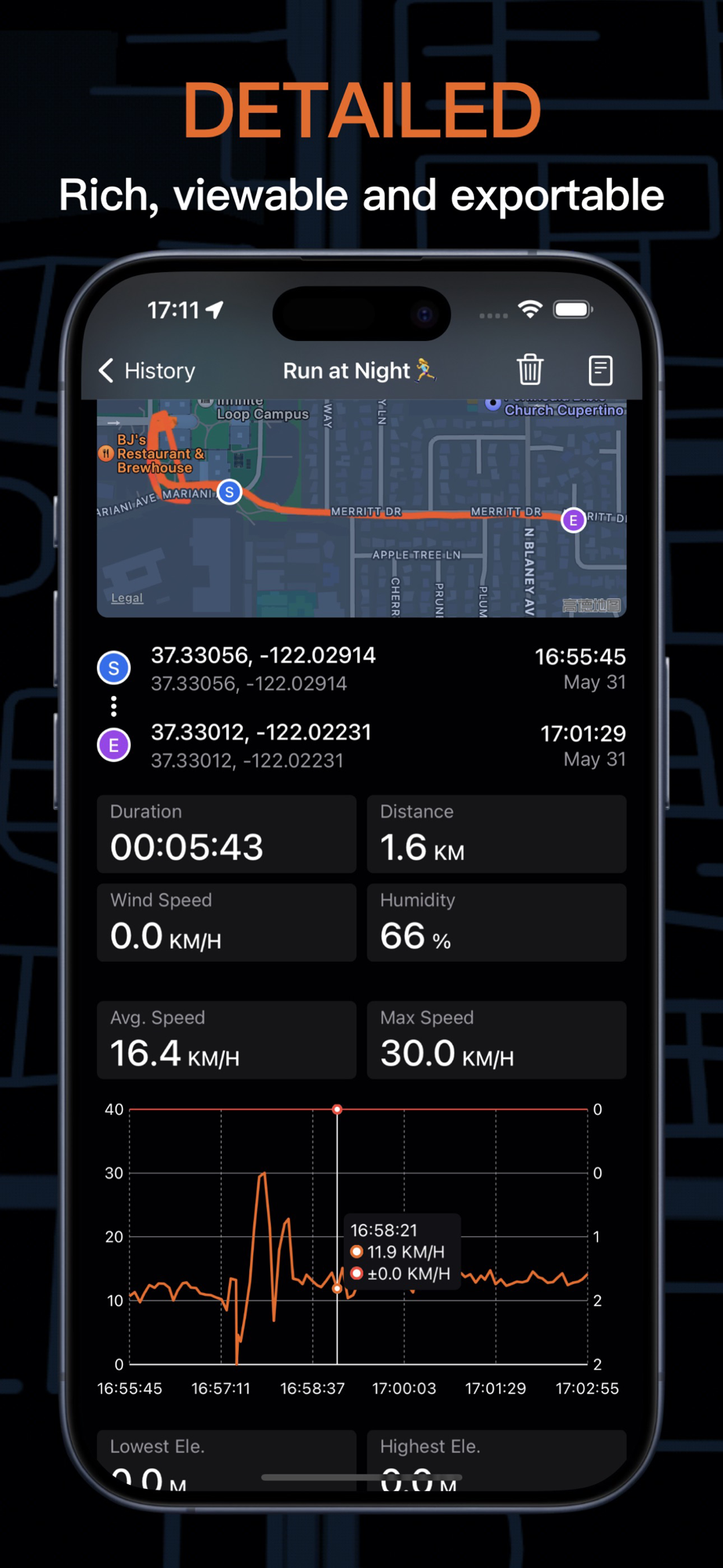 This speedometer not only provides real-time and precise speed monitoring but also captures and records comprehensive trip data. From highest speed, average speed, trip distance, and altitude to direction, trip movement and stop time, temperature, and weather information, we save and display it all for you. You can even export this data in GPX format for further analysis and sharing.