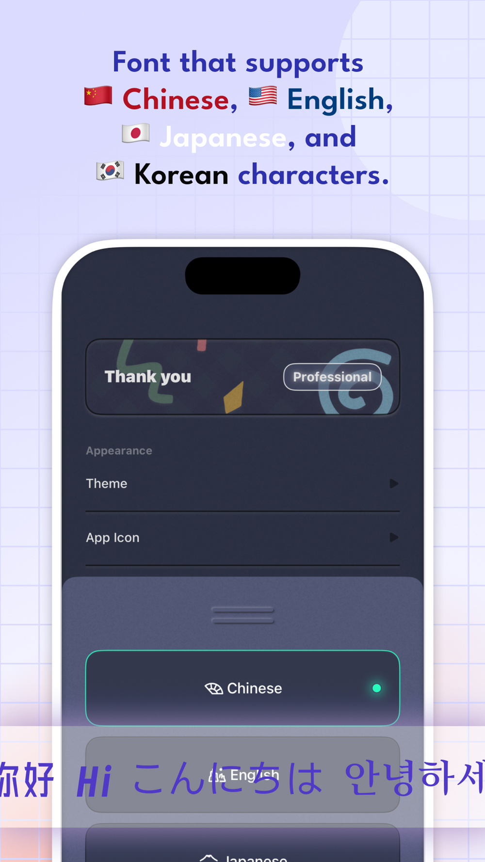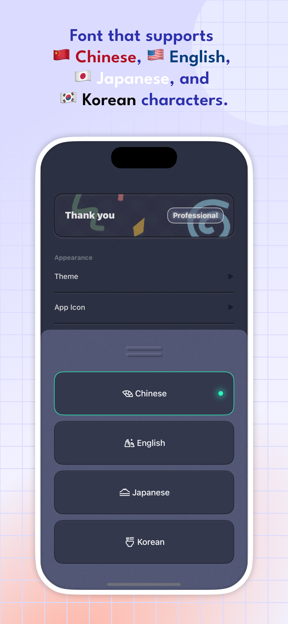 - Display fonts support Chinese, English, Japanese, and Korean