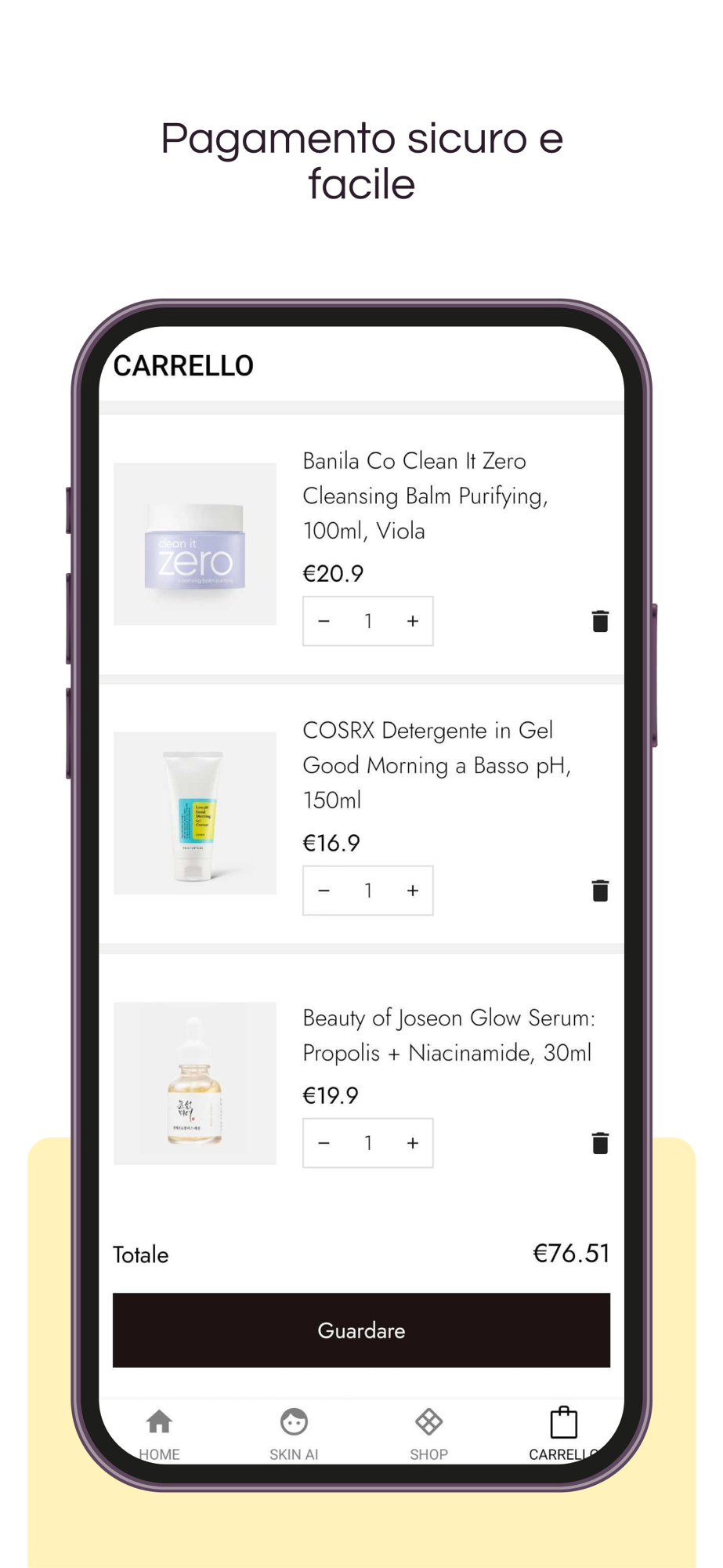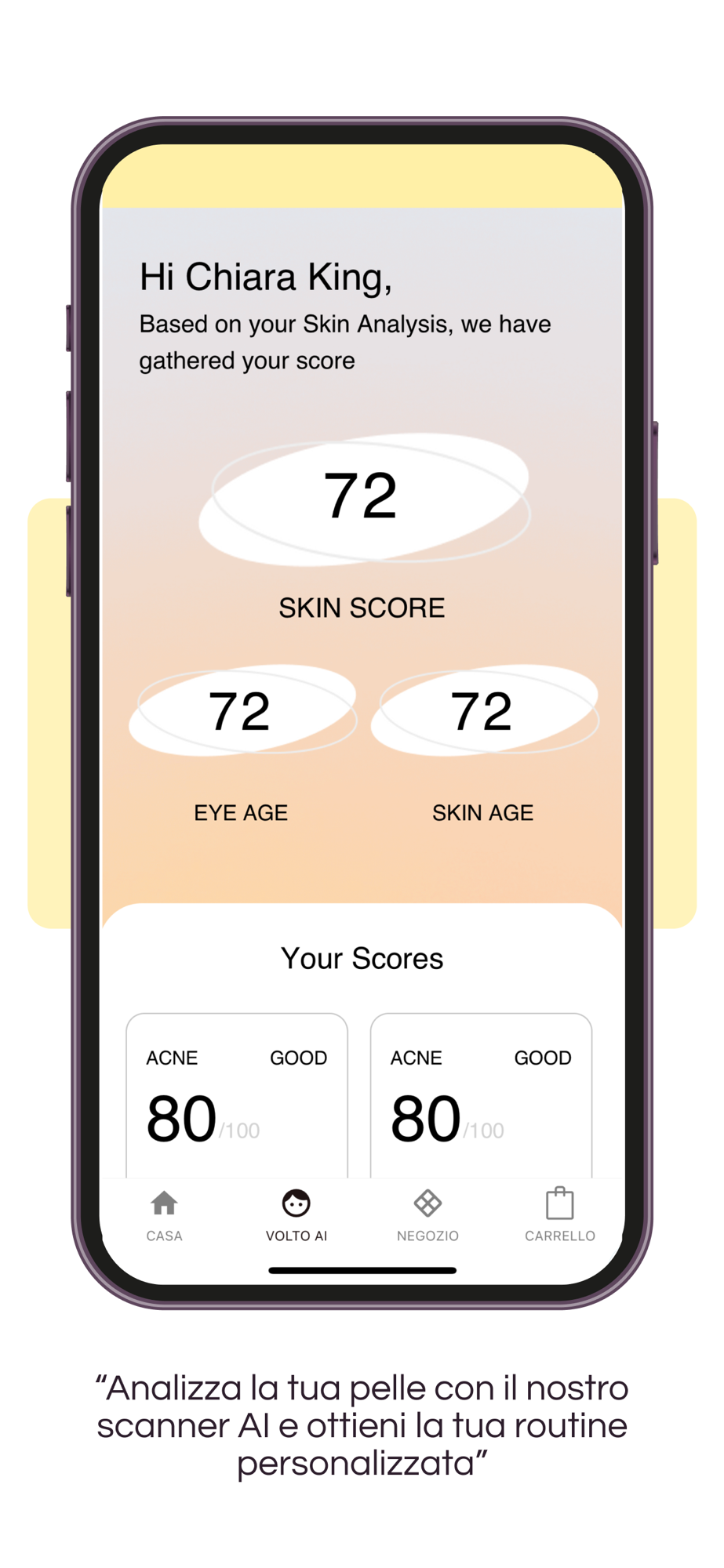 Funzione SkinAi: Analizza la tua pelle con il nostro scanner facciale basato su intelligenza artificiale e ottieni un regime di skincare personalizzato.