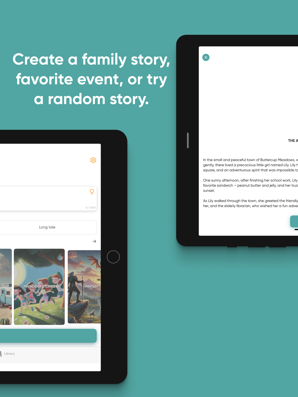 Endless Stories: Explore a variety of enchanting story themes and characters, all created by artificial intelligence – perfect for family time together.