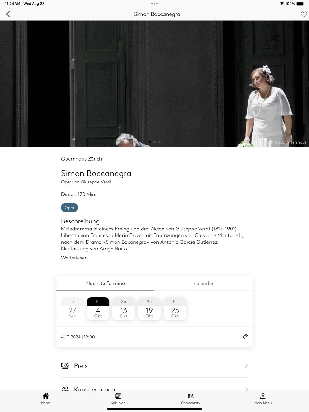 Mit der Opernhaus-App erleichtern wir die Ticketbuchung für Vorstellungen im Opernhaus Zürich! Stetig werden neue Features erscheinen. Folgende Funktionen können wir in der ersten App-Version anbieten: