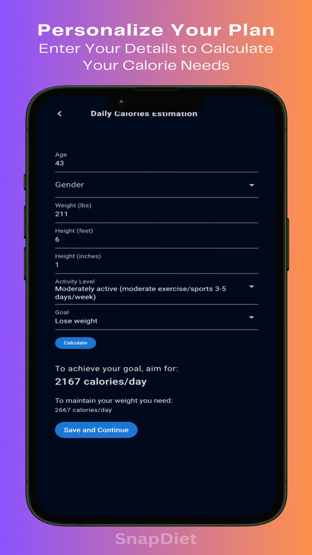 Tailor your daily calorie and macro targets based on your unique profile—height, weight, age, activity level, and goals—to achieve optimal results with Food Calorie Tracker Calories & Macros in Seconds!