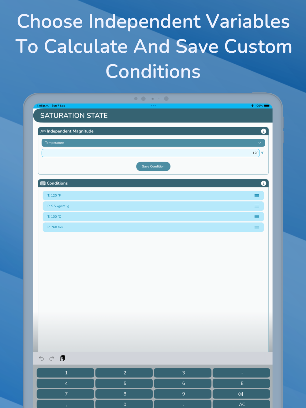 Steam Tables is a professional app that calculates water's thermodynamic properties.