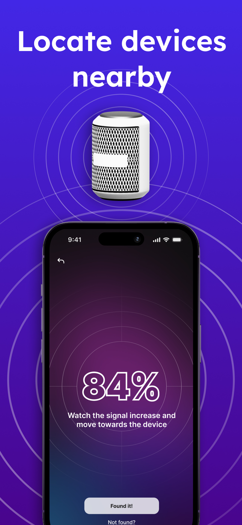 Should you misplace your device, this app allows you to utilize your paired iPad or iPhone to aid in its retrieval. Simply install the app, launch it, and let it lead you to your lost item. Our product works by attempting to establish a wireless connection with your device's unique signature.