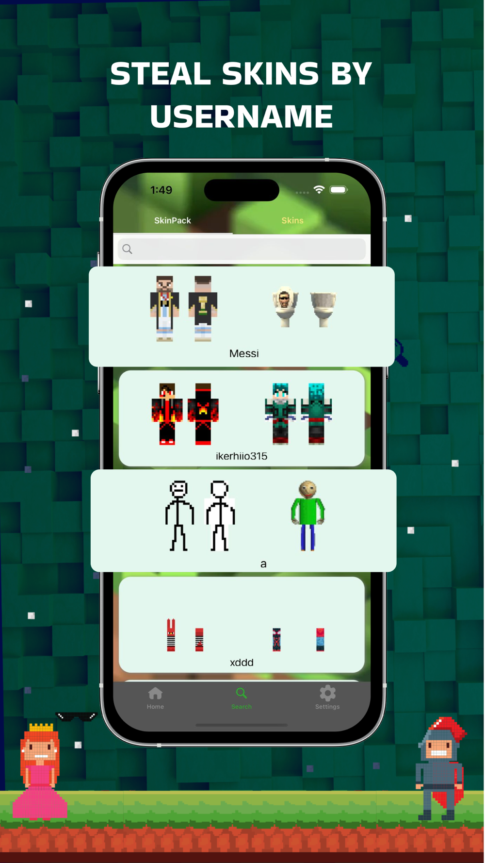 為 Minecraft 愛好者推出終極應用程式!透過我們的應用程序,您可以探索大量 Minecraft 皮膚,並將它們輕鬆保存到您的裝置上。透過我們友善的使用者介面和強大的功能,您可以透過增強的創造力和個人化潛入 Minecraft 的世界。無論您喜歡製作、建造還是探索,我們的應用程式都旨在提升您的 Minecraft 體驗。以下是您可以期待的: