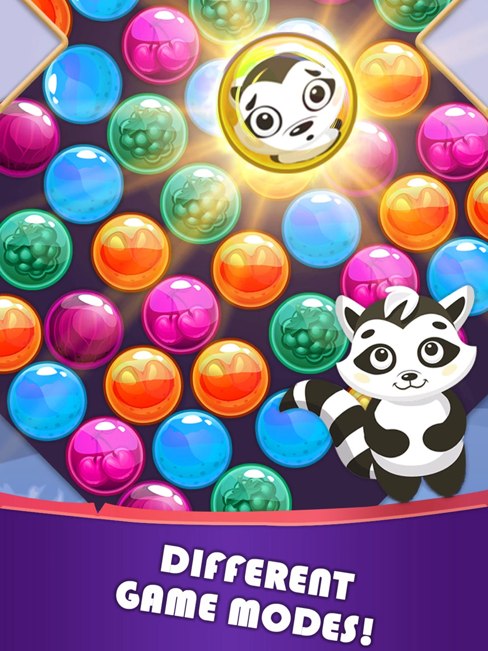 Consider yourself in a world of raccoons where colorful bubbles are everywhere! In this Bubble Shooter - Ball Pop Game, you will play as a cute raccoon and get to shoot bubbles of the same color to pop them and rescue the baby raccoons trapped within them! But here's the bubbles pop trick: you must aim carefully to join at least two bubbles of the same color to make them pop.