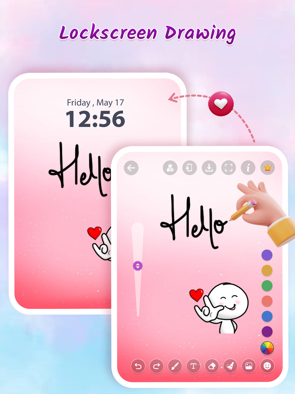 - In-App Drawing: Created masterpiece art within app itself use to decorate your phone lock screen and widgets screen.