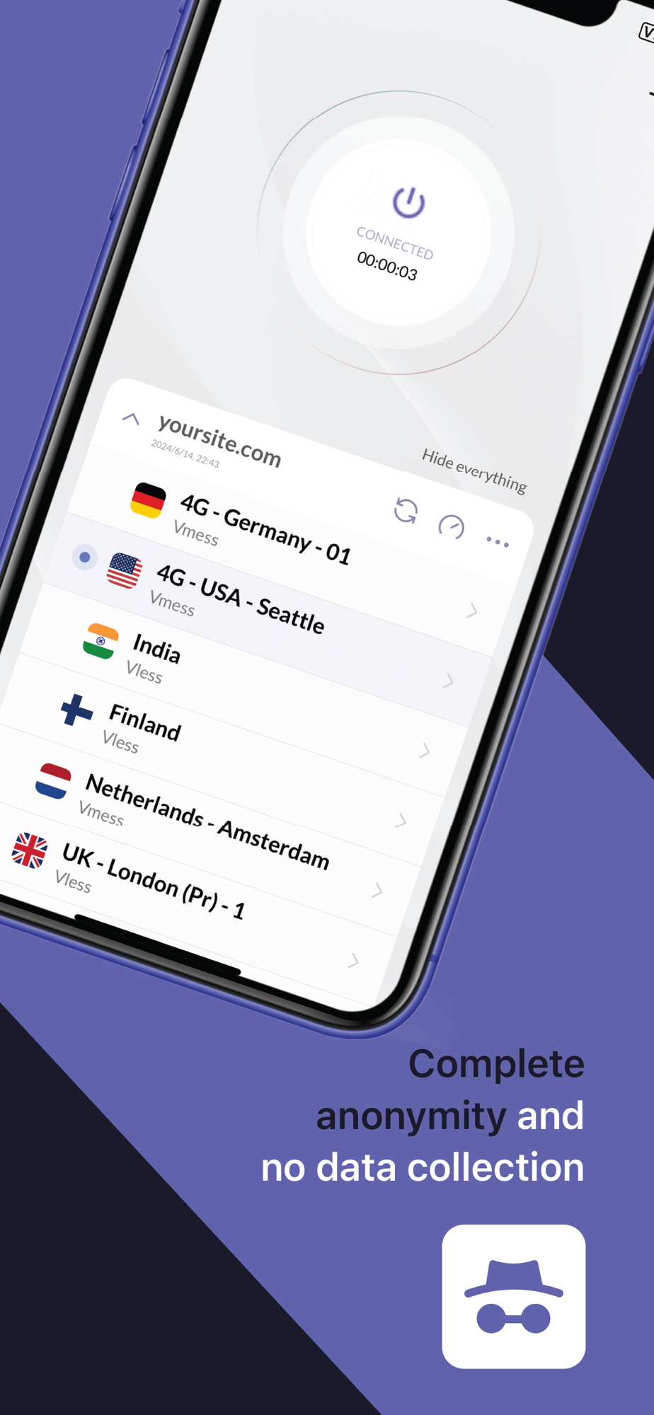 Happ ensures your network activity remains private by not collecting any data; your information remains solely on your device without being sent to external servers.