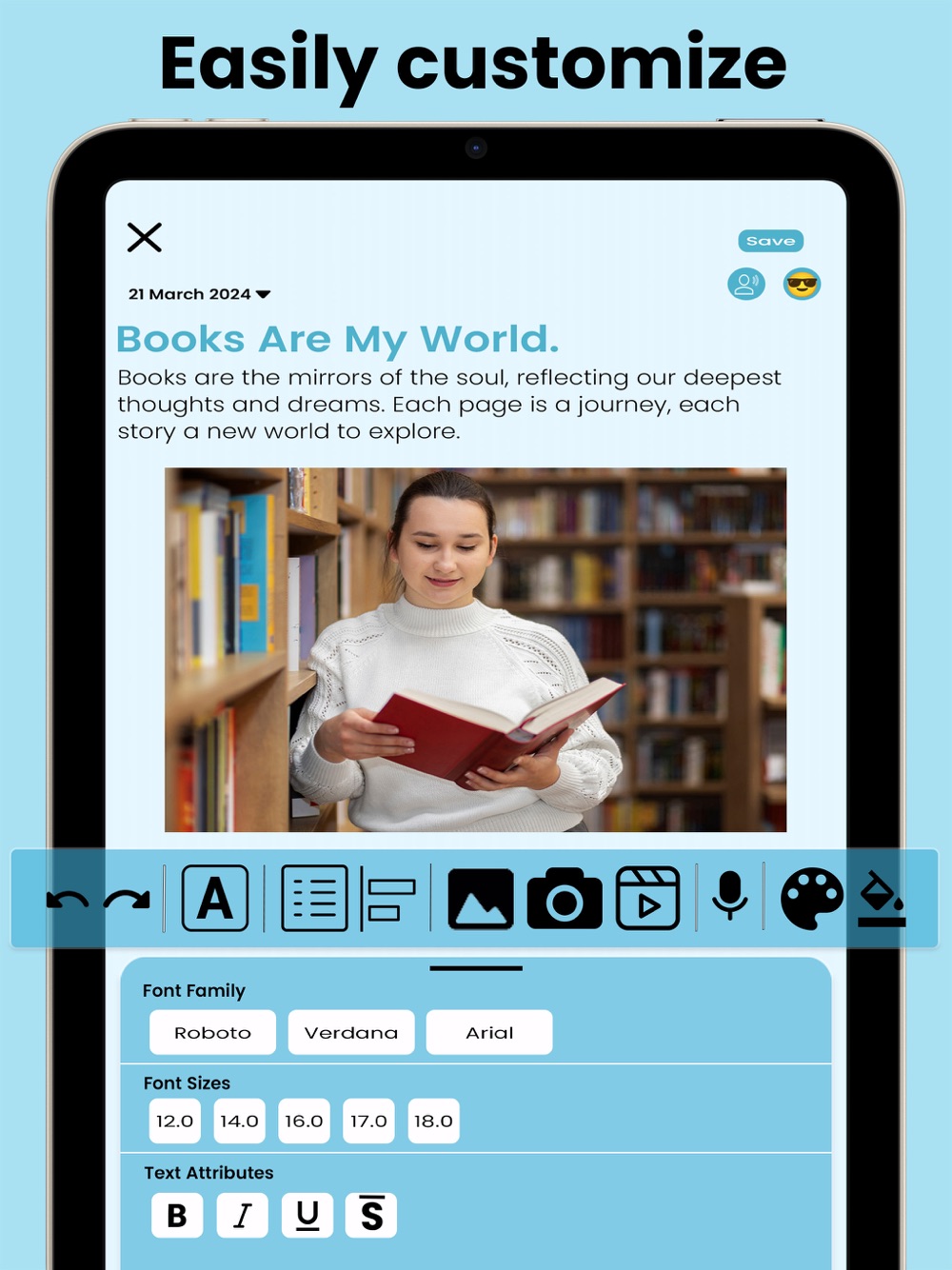 Customize Your Experience: Make your diary uniquely yours with customizable themes, fonts. Tailor your journaling experience to match your style, creating a space that inspires you to write and reflect.