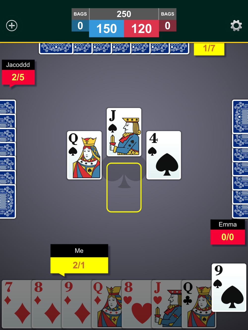 • Large Card Design: Our large fonts and oversized cards ensure that each game is easy on the eyes. This results in an exceptional spades game experience, whether you're using a pad or phone.