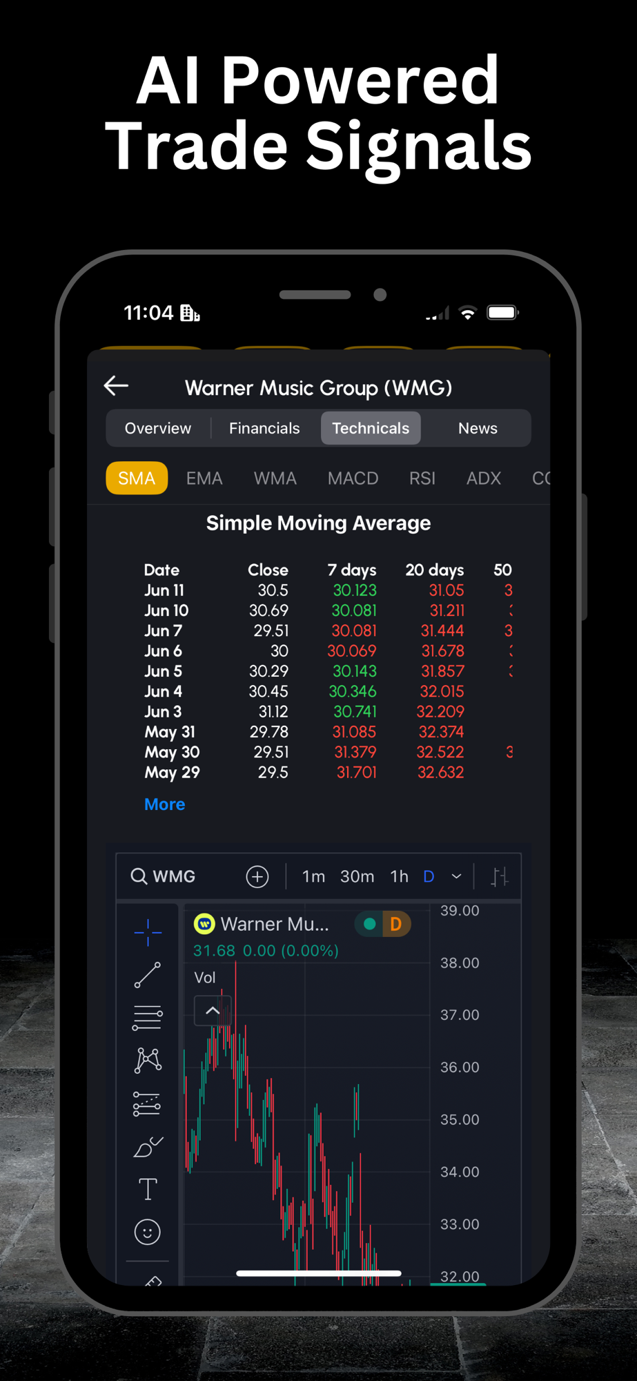 Advanced AI Analytics: Access comprehensive stock analysis, including SMA, EMA, and other key indicators, powered by AI.