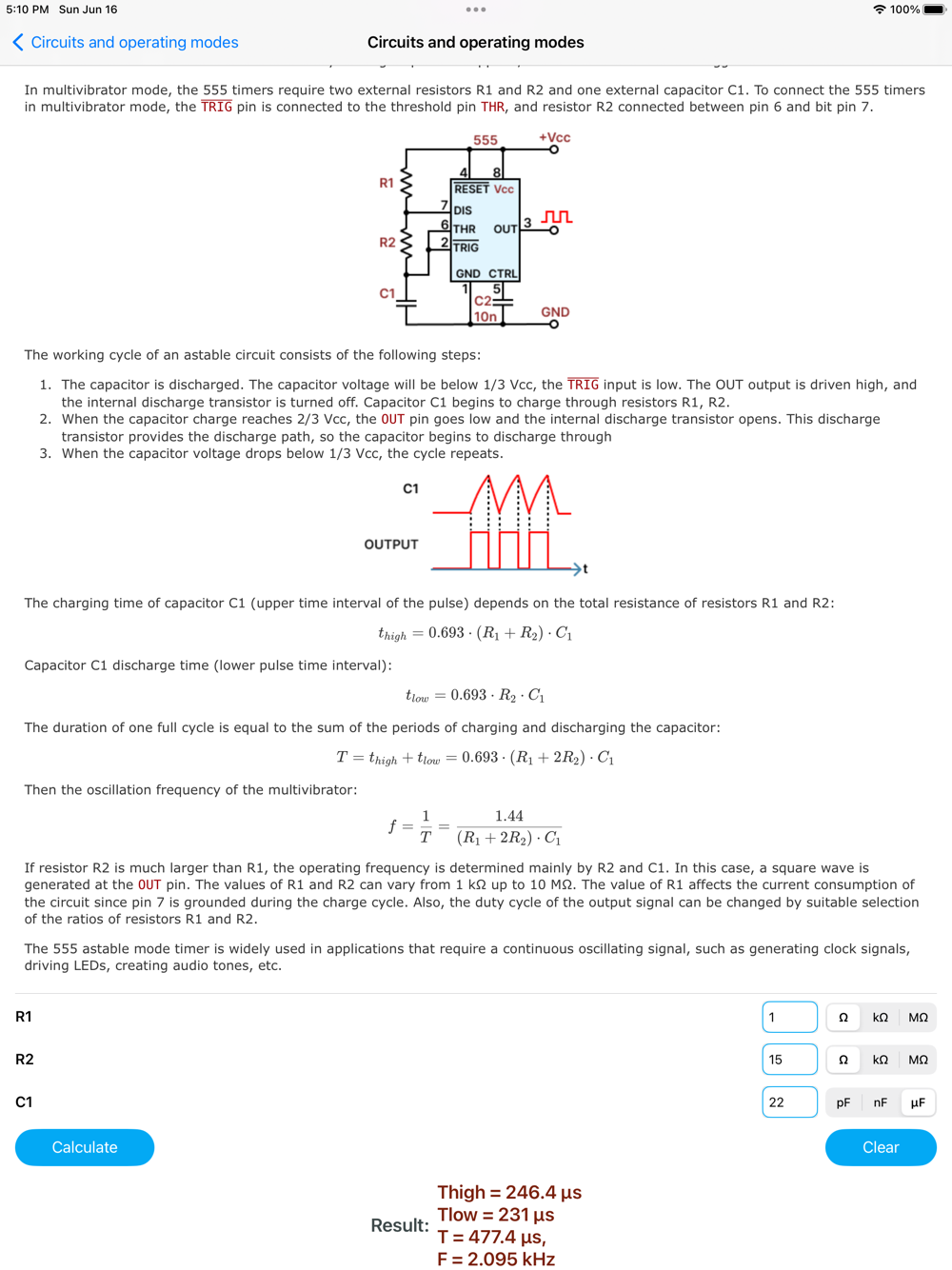 The app features 60+ tutorials, calculators, and circuit diagrams covering the full range of 555 timer applications, including monostable, astable, bistable, and more. Whether you're a beginner exploring electronics or an experienced developer building custom circuits, this app provides everything you need in one place.