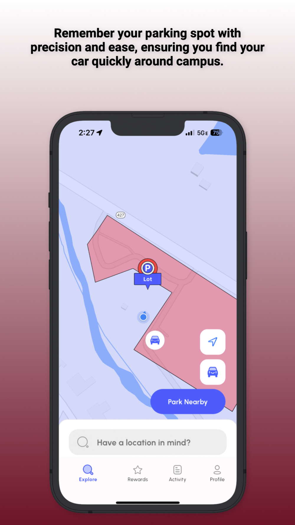 1. Find Parking On Campus: Easily locate available parking across the campus, ensuring you never waste time searching for a place to park.