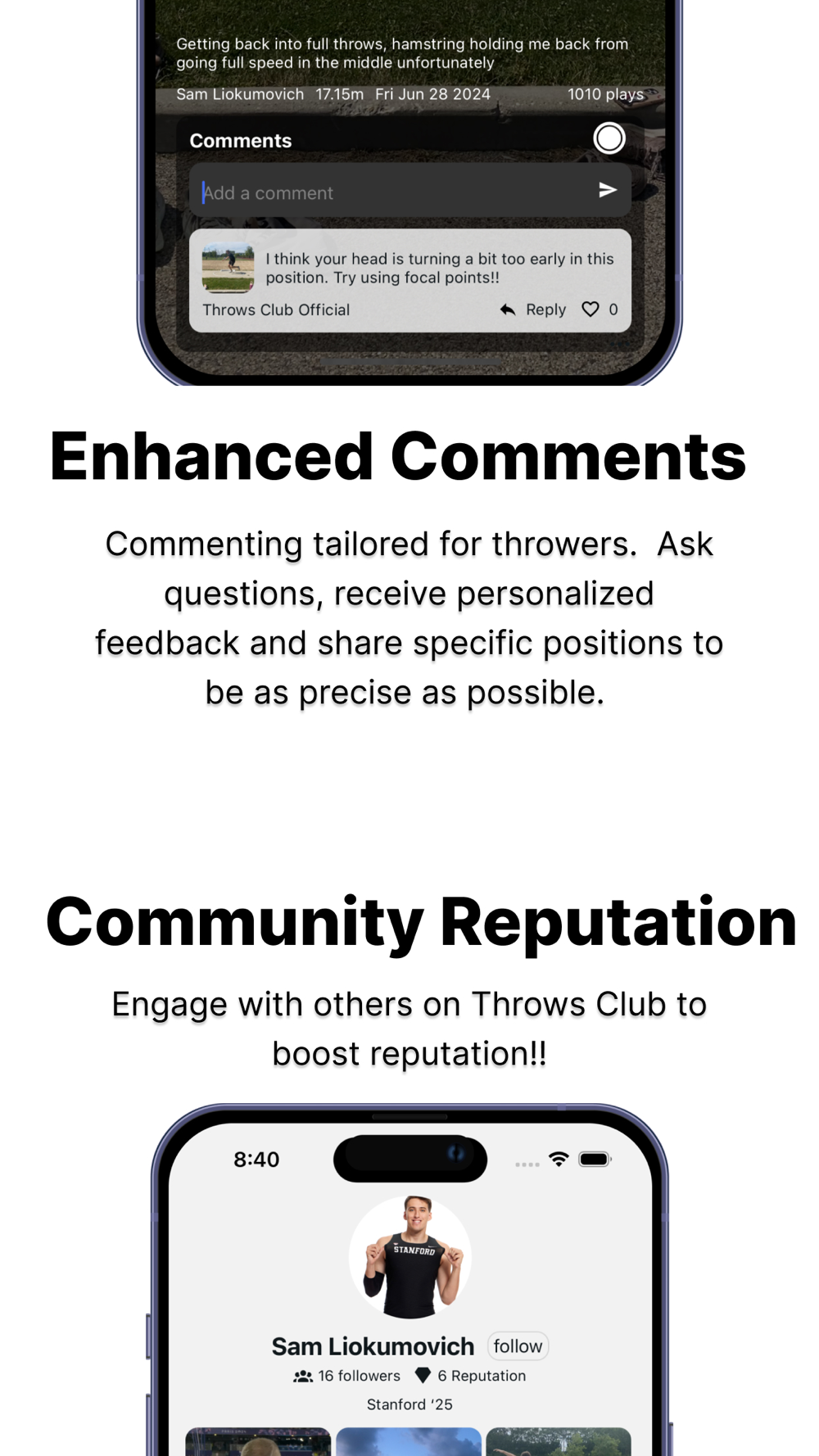 Introducing the world's first platform dedicated to throwers, designed by throwers! Discover other throwers, analyze film with advanced features like side-by-side comparisons, and engage in conversations about your throws. Join the throws community today!