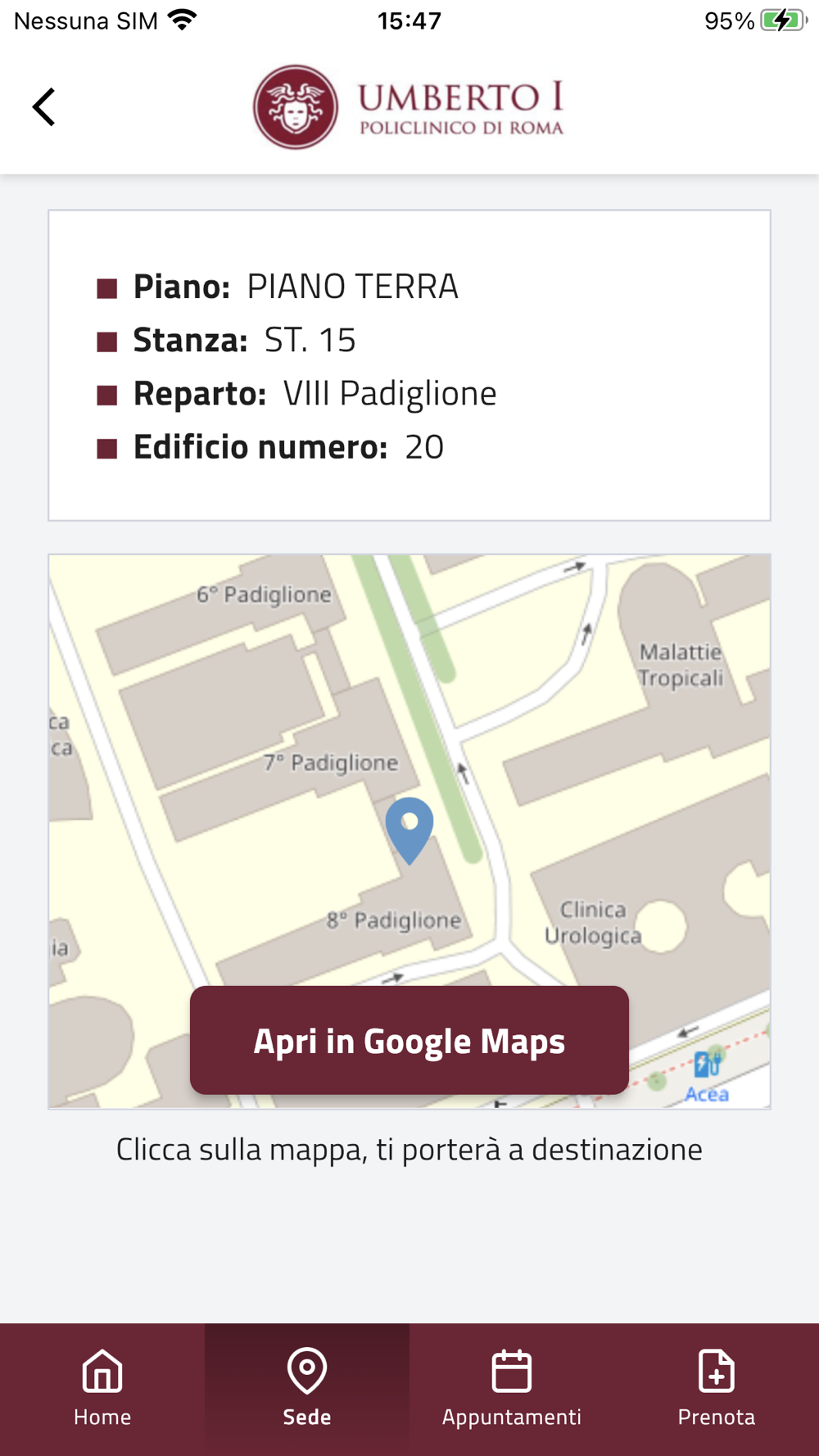- orientarsi all'interno del vasto complesso del Policlinico indicando Edificio, Piano e Stanza dove l'assistito deve recarsi in base alle prestazioni prenotate o al reparto desiderato.