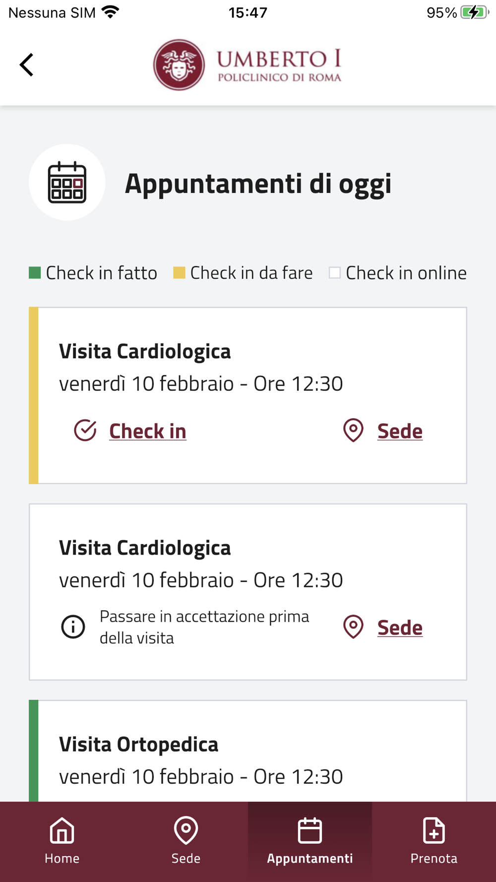 - verificare le prestazioni prenotate ed effettuare il check in, al fine di informare il personale sanitario del proprio arrivo in struttura.