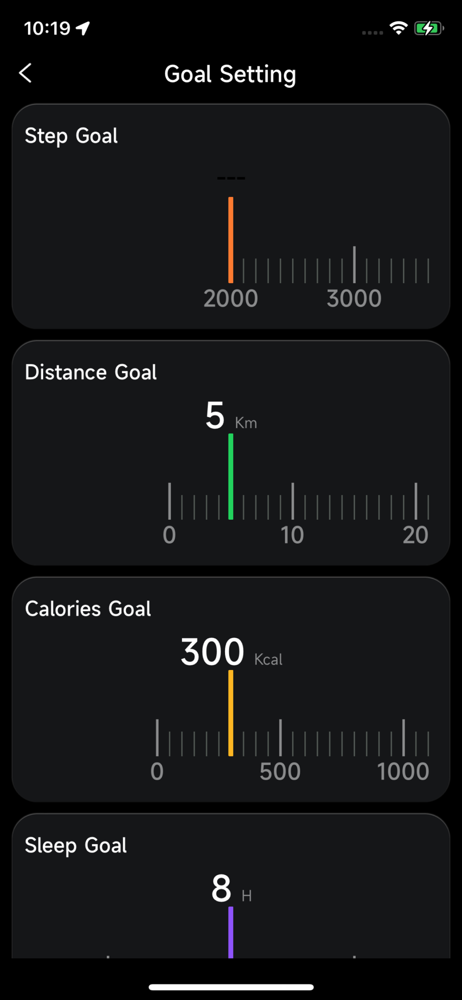 24-hour tracking of your steps, distance, calories-burnt, active-time, and reached daily-goal.