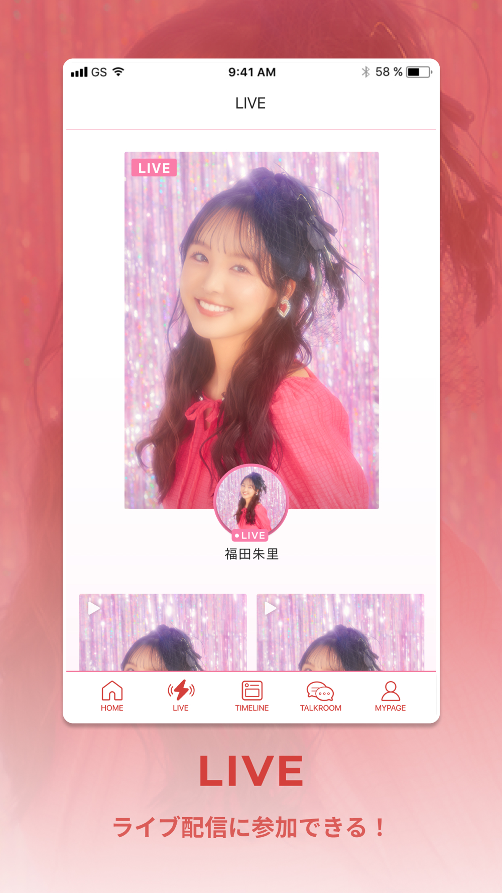 ファンクラブアプリ限定のライブ配信に参加できる!