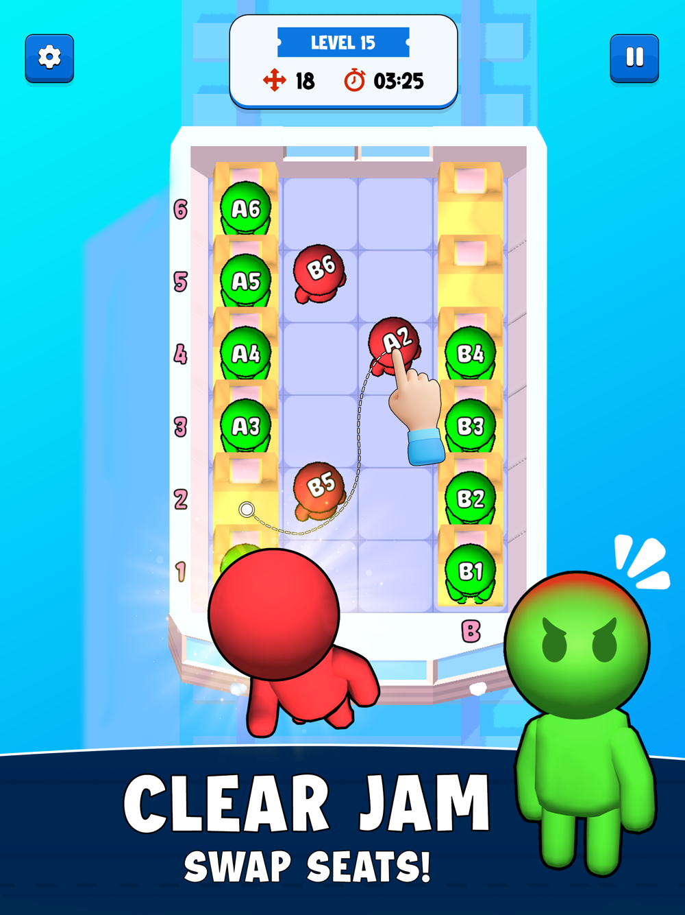 Play journey with Bus Seat Jam Master 3D, the addictive offline puzzle game that challenges your strategic skills. As passengers eagerly await their bus, your task is to sort them based on color, creating a relaxing yet brain-twisting experience. With simple tap controls, move and merge passengers, filling color blocks with the right travelers. Explore a cute combo of parking and farm animal games, solving match 3 puzzles with meowing cats and triple goods in a fun vending sort. Enjoy challenging levels and hours of entertainment in this unique sorting puzzle adventure!