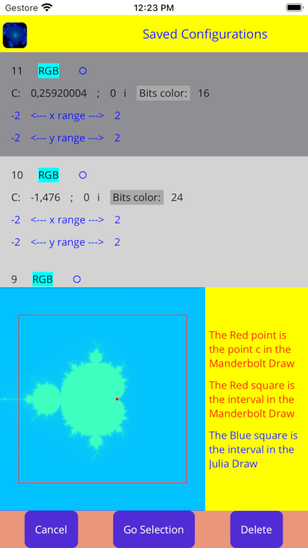 Applicazione che permette di esplorare l'insieme di Julia partendo dalla scelta della costante C nell'insieme di Manderbolt.