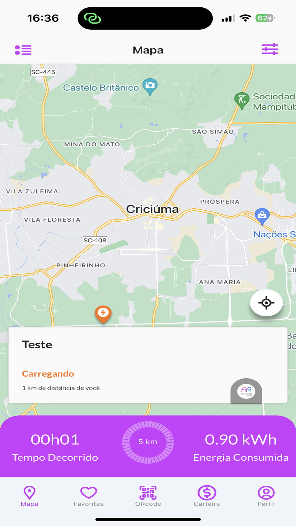 - Veja as estações de recarga mais perto de você