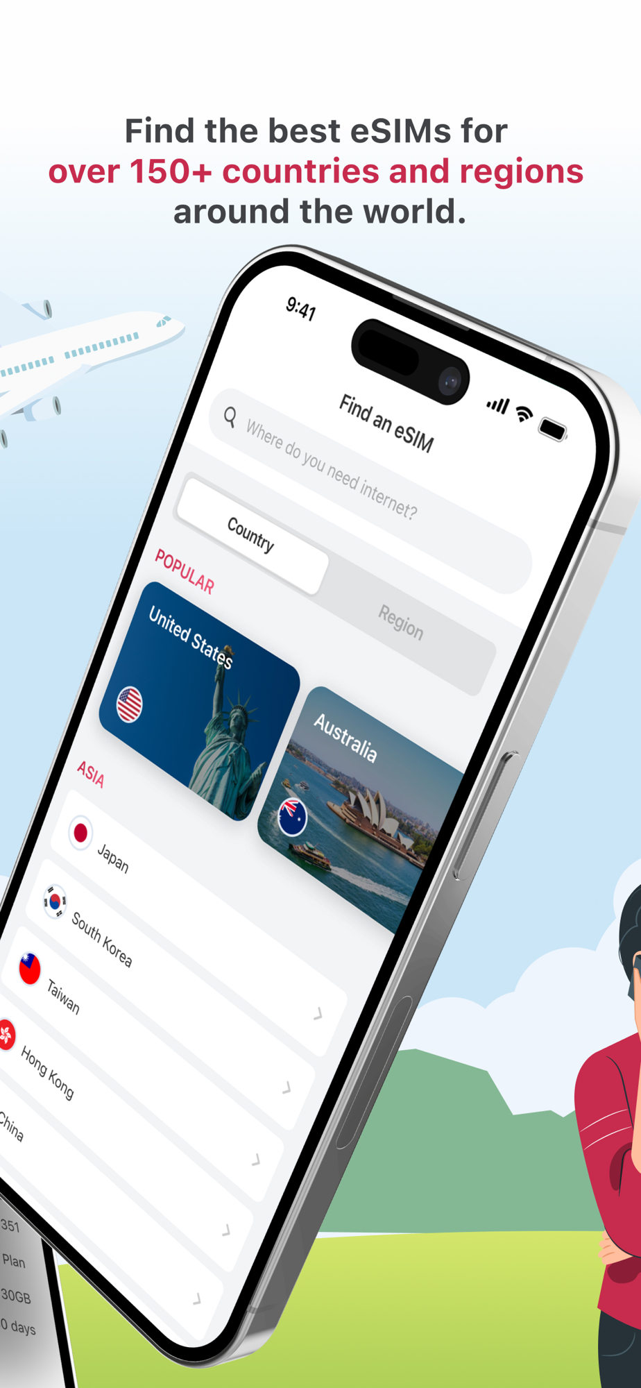 → eSIM(임베디드 SIM)은 스마트폰과 같은 기기에 디지털 방식으로 내장된 SIM입니다. 전통적인 SIM 카드와 달리 eSIM은 카드 형태가 아니며, 인터넷에 연결하기 위해 기기 슬롯에 삽입할 필요가 없습니다. 기능적으로는 전통적인 SIM 카드와 동일합니다.