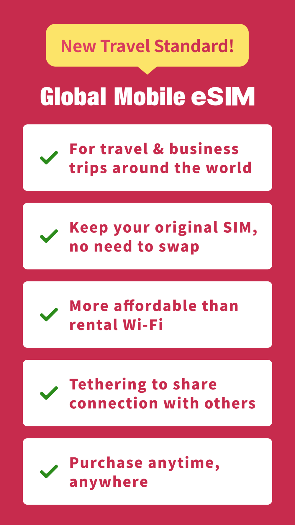 → 보다 원활한 경험을 위해 여행 전에 eSIM 설치를 완료하는 것을 권장합니다. 목적지에 도착한 후 설치할 수 있지만, 설정을 위해 안정적인 Wi-Fi 환경이 필요합니다. 미리 설치를 완료하면 목적지에 도착하자마자 즉시 활성화하여 사용할 수 있습니다.