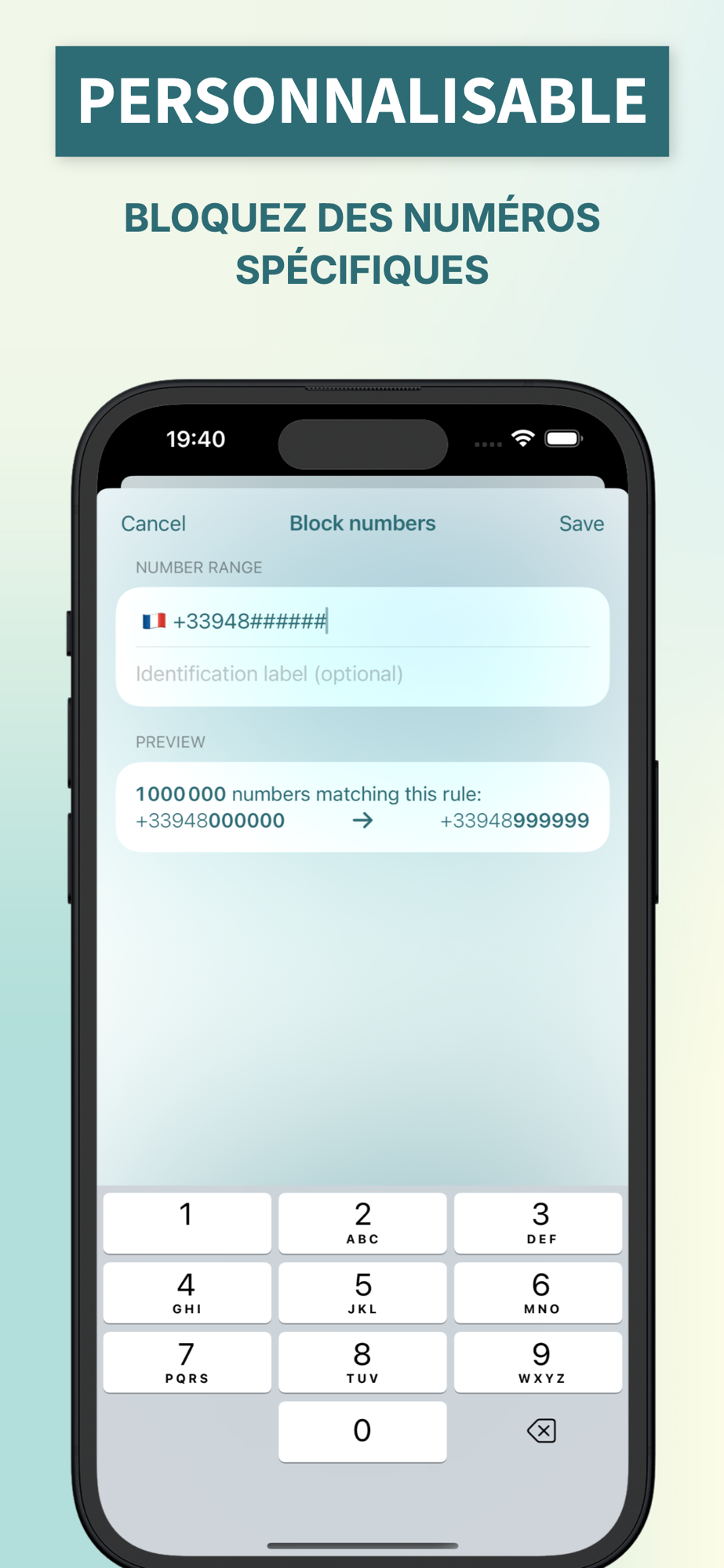 Vous pouvez également définir manuellement des plages de numéros à bloquer ou identifier! Prenez le contrôle de votre ligne téléphonique.