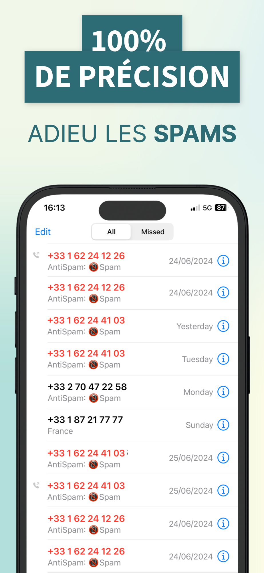 En utilisant cette app vous identifiez et bloquez plus de 12 millions de numéros de démarchage publicitaire, basé sur les données officielles et en temps réel de l'ARCEP. Plus aucun appel abusif !