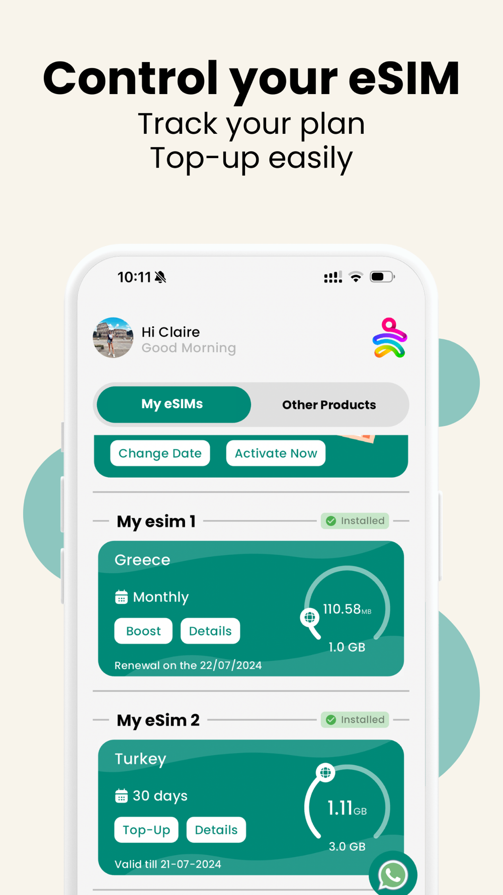 Easy Management: Manage your eSIM profiles effortlessly through our intuitive interface. Switch between profiles, monitor usage, and top-up with just a few taps.