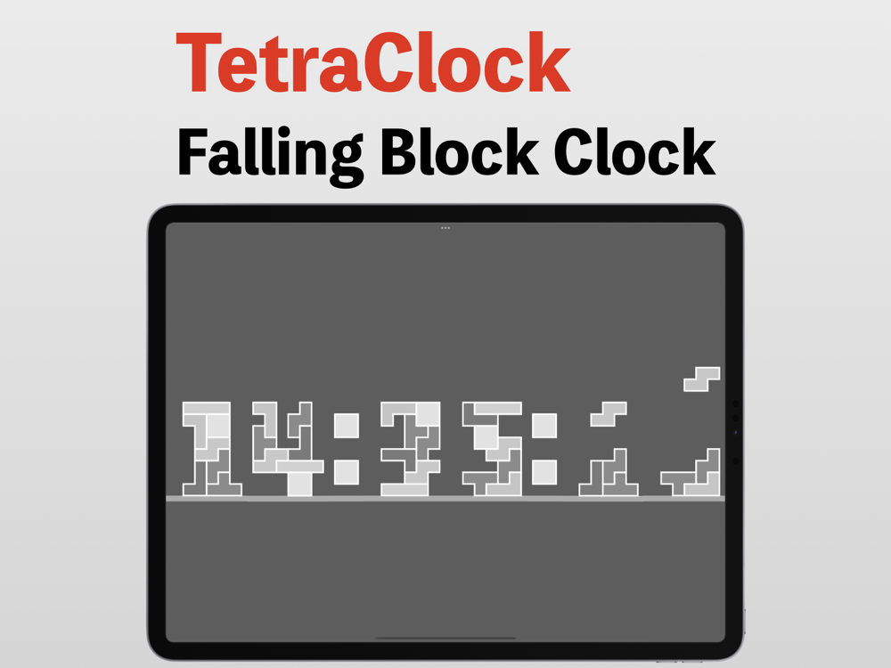 'TetraClock' is a clock app that represents the time by stacking seven types of single-sided tetromino-shaped blocks as they fall.