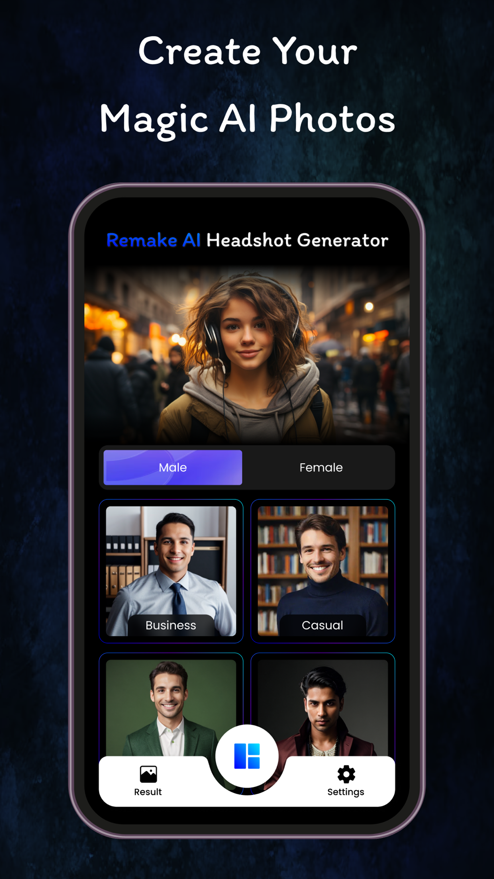 With Remake AI Headshot Generator app you can create professional business headshots, social media posts.