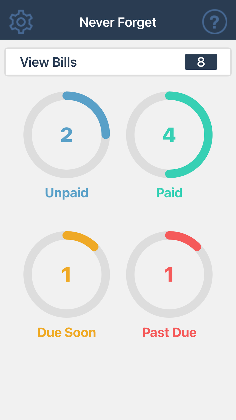 Never Forget is a simple, intuitive mobile app for managing your bills. Set bill reminders for one time or recurring bill and never pay late fees again. Our simple user interface provides an easy visual reference for your bill cycles. All your data is stored only on your device and no external servers (including ours), so your data is yours and yours alone. No advertisements, no gimmicks, just a simple app. so you can manage your bills without stress.