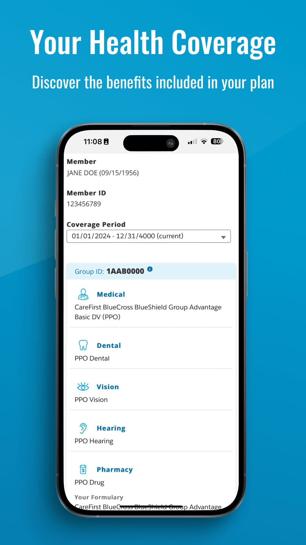 This application gives CareFirst BlueCross BlueShield Medicare Advantage members the ability to manage their health insurance through their mobile devices by providing secure, personalized information on items ranging from claims, deductibles, who's covered, and downloadable ID Cards, to locating a provider or urgent care center near them. Members can also register for the CareFirst BlueCross BlueShield Medicare Advantage secure member site, My Account, and maintain their account and communication preferences using the application.