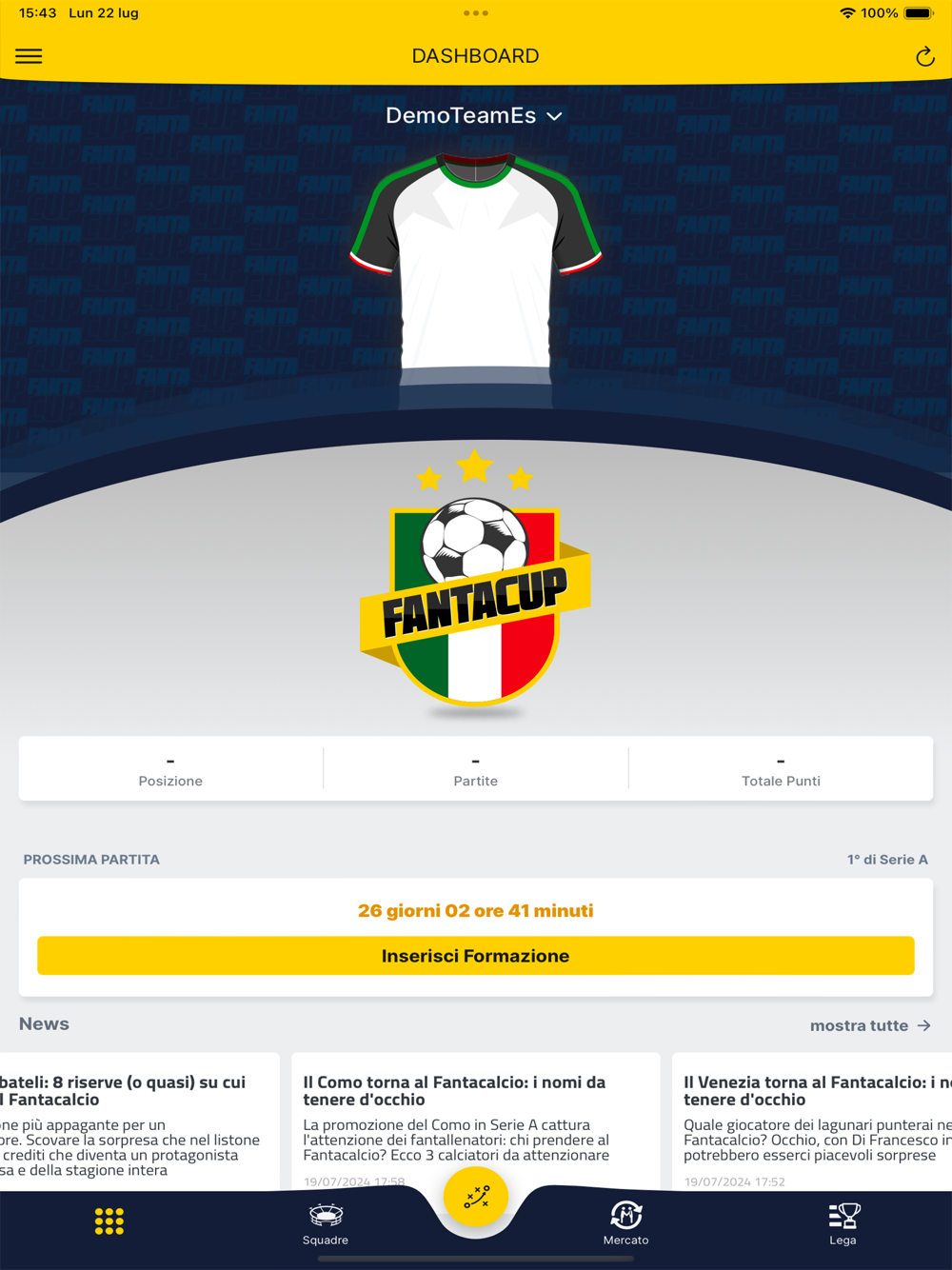 - Statistiche aggiornate e Allenatore in seconda