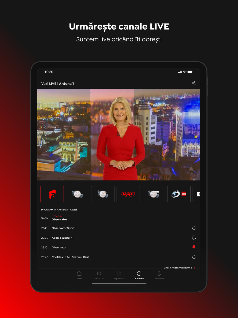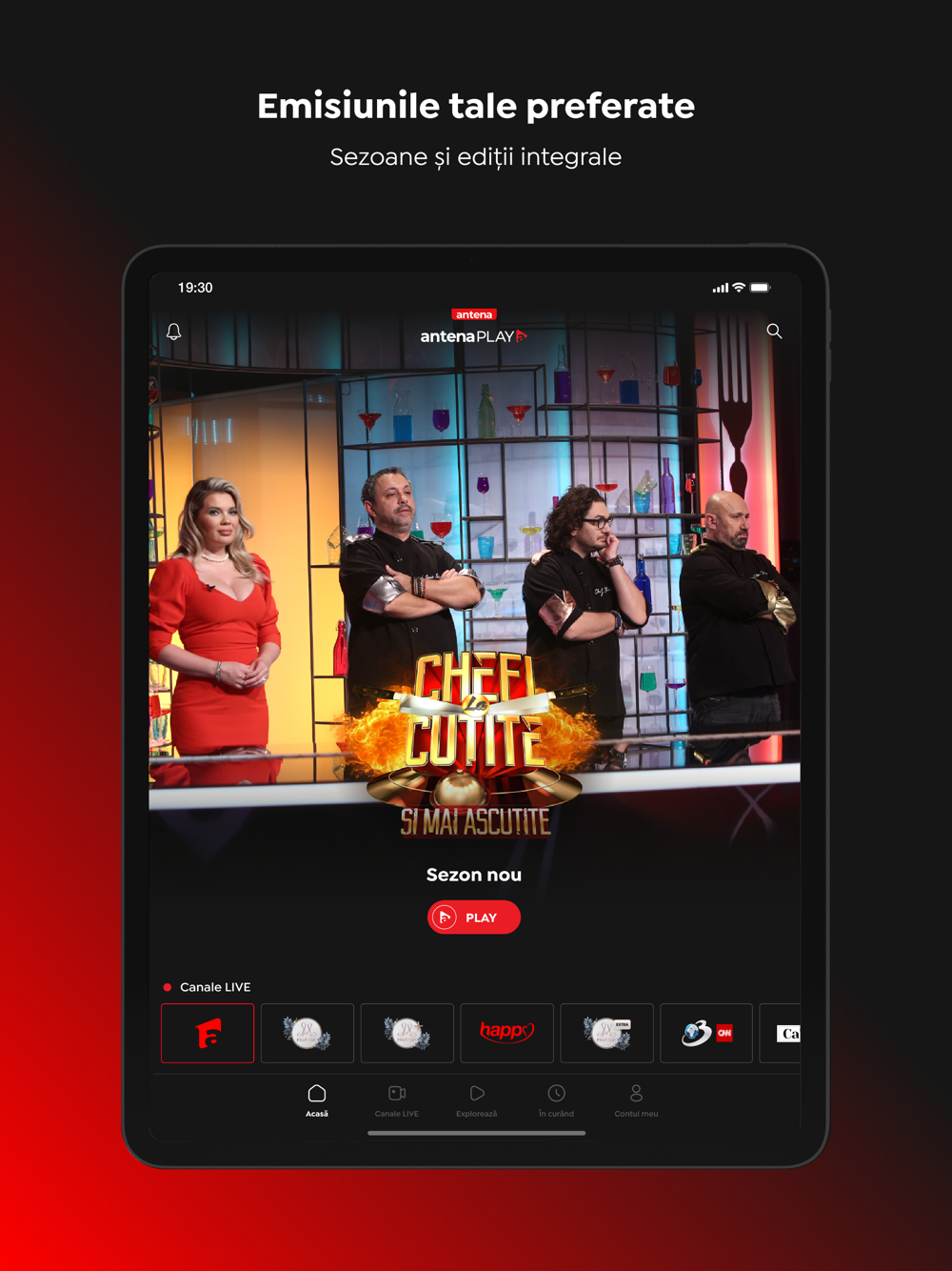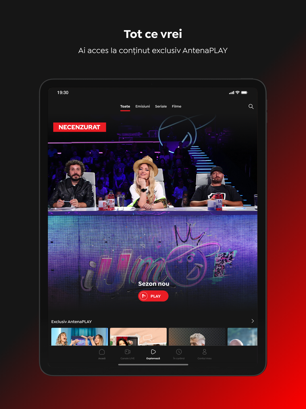 Platforma de streaming AntenaPLAY are o interfață prietenoasă și ușor de folosit pentru ca tu să ai cea mai bună experiență de vizionare. Te bucuri de conținutul tău preferat, oriunde și oricând. Peste 100 de show-uri de divertisment, zeci de vedete, seriale, live News, cele mai proaspete mondenități și sport live.