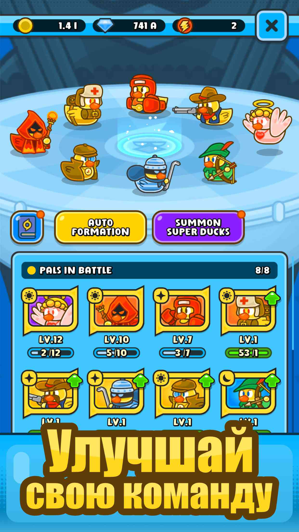 Наслаждайтесь простотой idle игр с Резиновой уточкой: Idle игра. Ваш герой автоматически движется и сражается, что позволяет вам сосредоточиться на приключении, не отвлекаясь на сложные управления. Когда возникает опасность, Супер Утки приходят вам на помощь. Даже когда вы не активно играете, ваша idle армия продолжает собирать ресурсы и укреплять вашего героя.