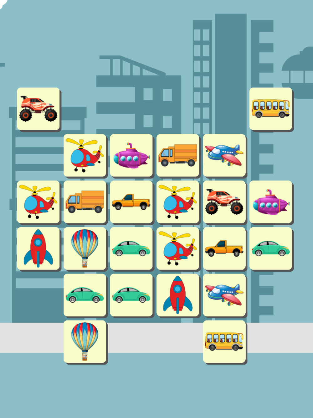 - Connect 2 matching tiles with up to three straight lines without crossing other tiles.
