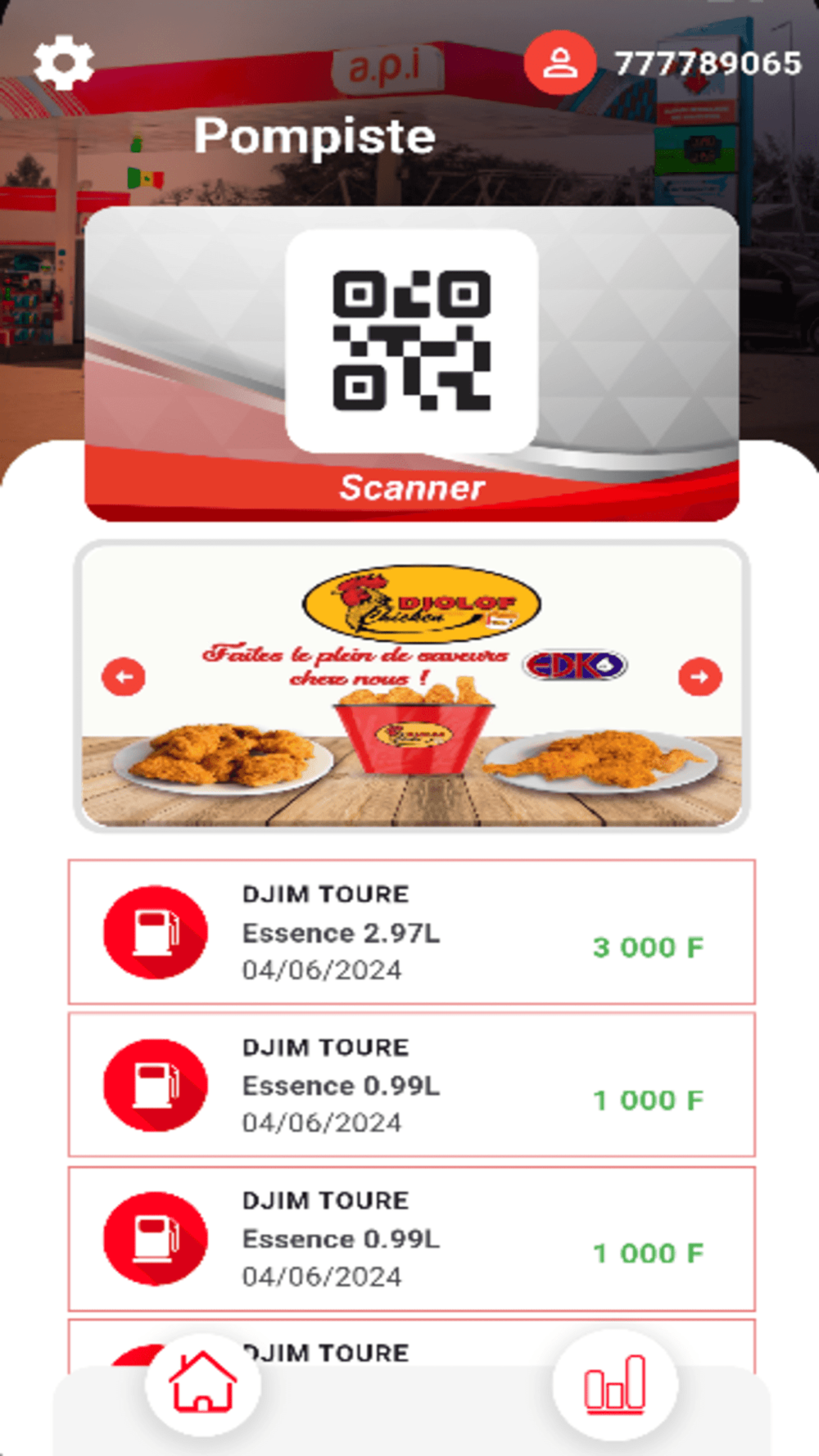 API BUSINESS est une application de paiement permettant aux utilisateurs d'effectuer des transactions liées à l'achat d'essence et de diesel. En plus des paiements pour le carburant, elle offre également la possibilité de suivre les dépenses en carburant.