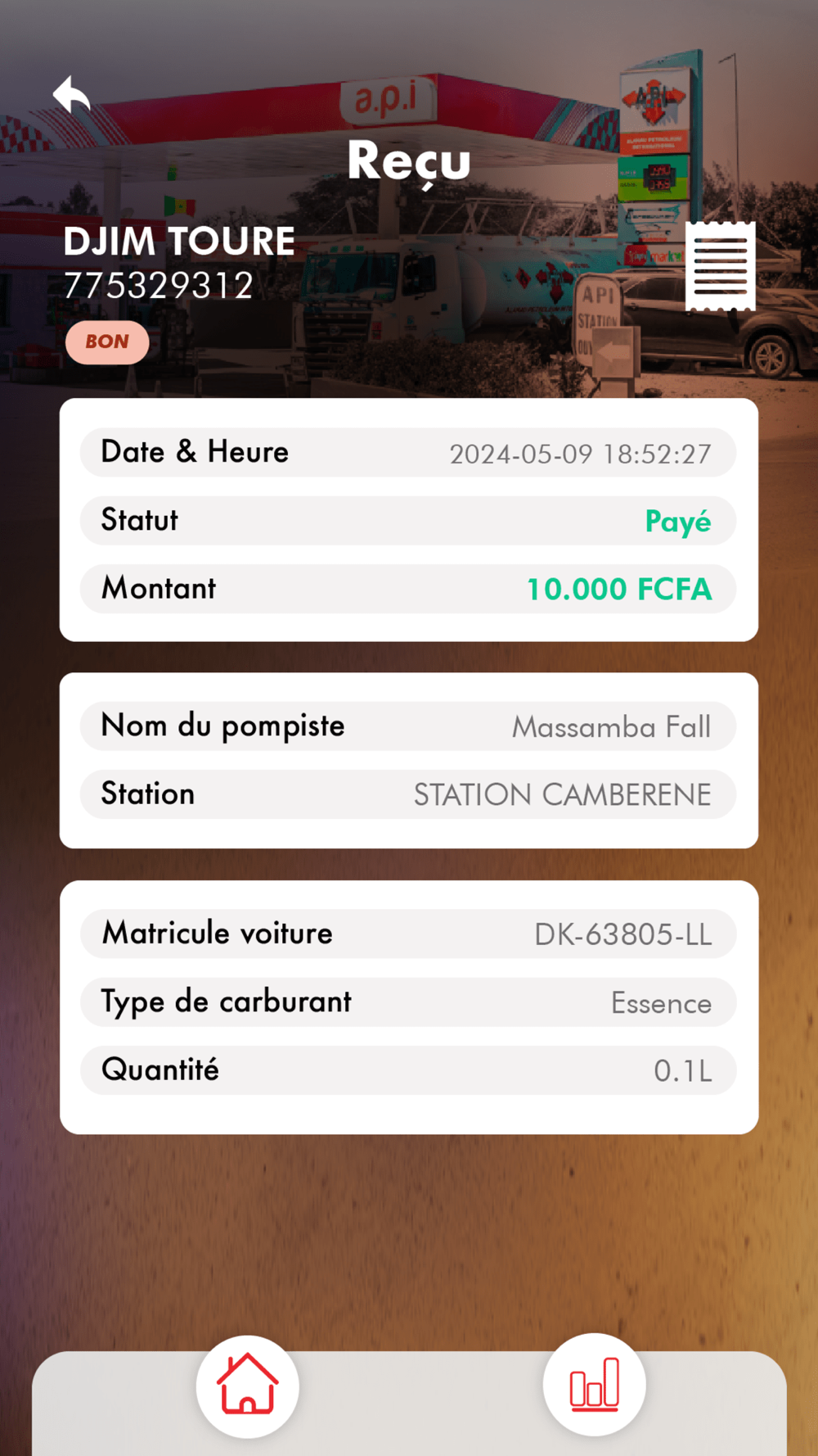 En résumé, notre application simplifie le processus de paiement pour le carburant tout en offrant une fonctionnalité de transfert de bons pour une expérience utilisateur plus complète et pratique.