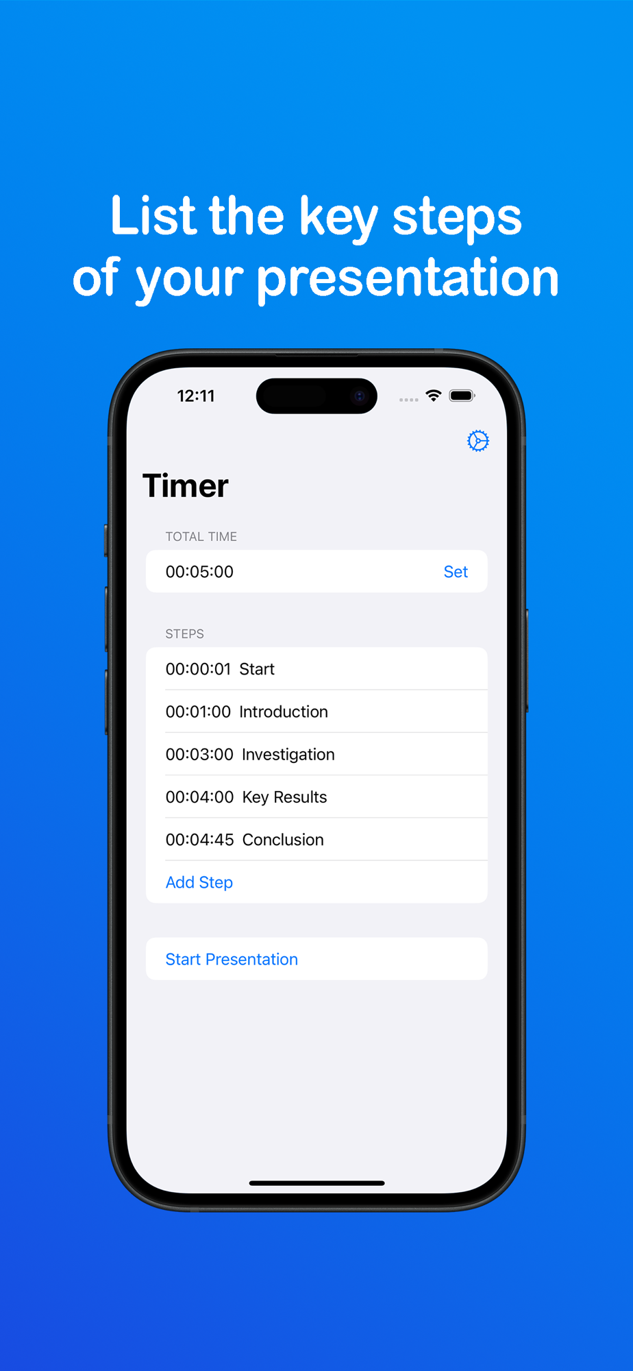 • List and customize the main steps of your presentation.