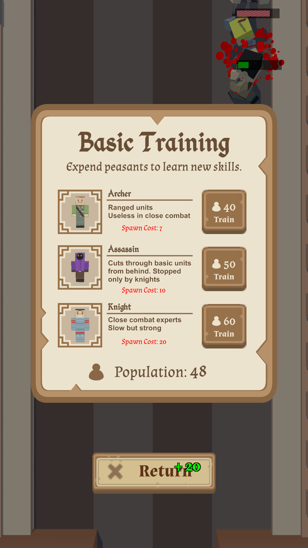 Choose which units to train up and send them to the bridge to defend the castle. Keep an eye on your population, it is your only resource. When the population reaches zero its game over.