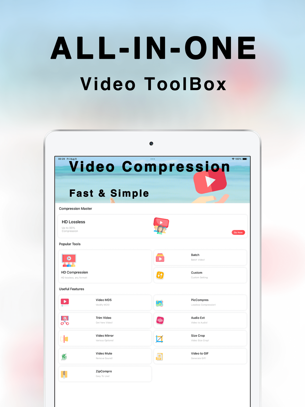 - Custom compression: can customize the compression parameters, a variety of clarity can be selected, professional and efficient.