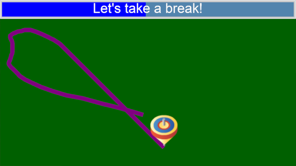 * Toy break - The child is given periodic breaks with a fun on-screen spinning top that draws on the screen while responding to both touch and tilt commands. This feature can be turned off if the child does not need breaks or finds them distracting.